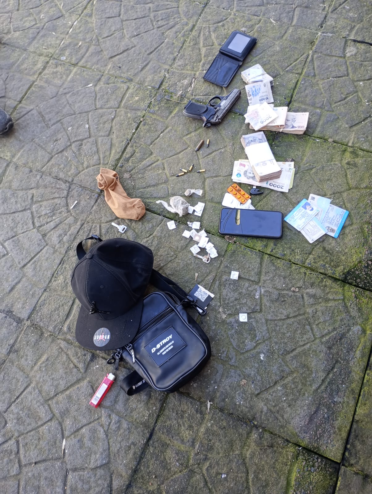 En el lugar del enfrentamiento, la Policía incautó el arma utilizada por el detenido, cinco proyectiles calibre .380, un morral, una gorra con visera, dinero y la bicicleta robada en la fuga.