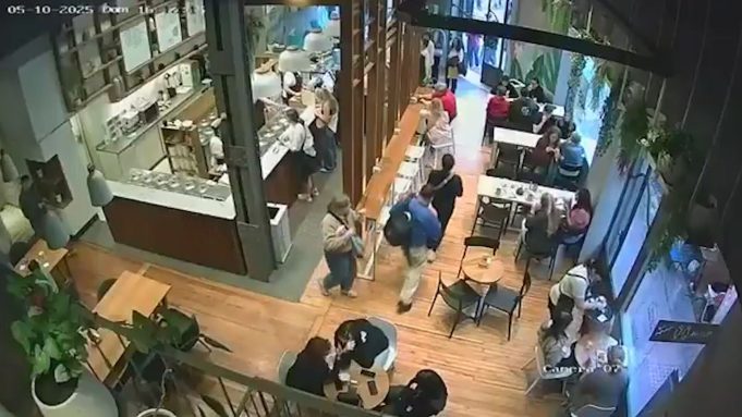 El episodio ocurrió cerca de las 16:10 y quedó registrado por las cámaras de seguridad del lugar. Las imágenes muestran la secuencia: Olguín disfrutaba de una merienda junto al hijo de su pareja, mientras el estuche rígido y rectangular de color negro, con una pulsera colgando, permanecía a sus pies, debajo del asiento.