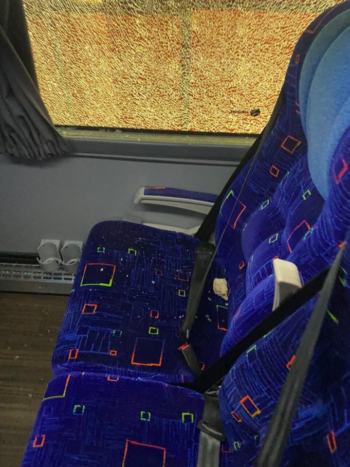 El club acompañó el reclamo con un video en el que se visibilizaron los daños materiales que se registraron desde el interior del vehículo. Las imágenes mostraban una ventanilla completamente astillada y uno de los pedazos de piedra que quedó alojado en el asiento.
