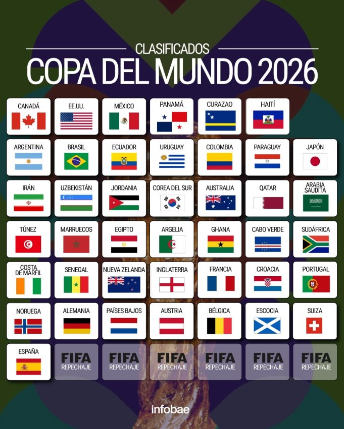 ¿Cómo es esa clasificación? Los 12 segundos de los grupos antes mencionados más los cuatro mejor ubicados en la Nations League 2024/2025 que no fueron primeros o segundos en las zonas (Rumania, Suecia, Irlanda del Norte y Macedonia del Norte), conformarán ocho llaves de semifinales que desembocarán en cuatro finales, todas series a partido único, que determinarán a los cuatro clasificados. El sorteo de esta instancia se llevará a cabo este 20 de noviembre en Zurich, Suiza.