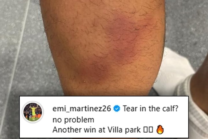 “¿Desgarro en la pantorrilla? No hay problema», escribió el marplatense, de 32 años, quien añadió una foto del hematoma en la zona que se lesionó en el calentamiento antes del choque ante el Feyenoord por la Europa League.