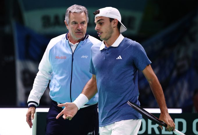 Javier Frana y un intercambio con Francisco Cerúndolo en medio del partido. Por delante, Alexander Zverev (Fuente: REUTERS/Alessandro Garofalo)