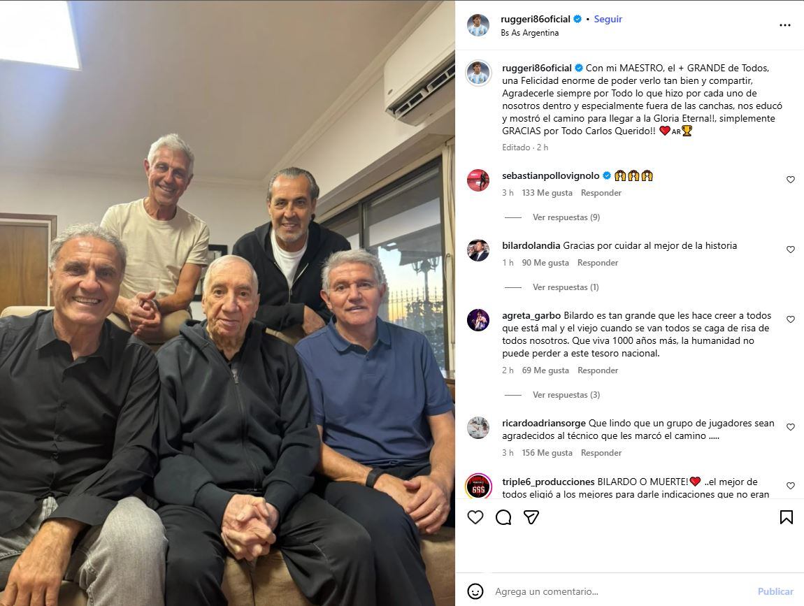 Este último encuentro, que tuvo lugar en el espacio donde Bilardo reside bajo cuidados médicos debido al síndrome de Hakim-Adams, fue documentado por Ruggeri a través de una publicación en Instagram. La familia del Doctor, de 87 años, lo mantiene bajo un cuidado especial médico desde mediados del 2018 cuando se lo diagnosticó por primera vez esta condición tras un informe inicial que advertía “un cuadro confusional transitorio”. Desde entonces, los ex futbolistas que estuvieron junto con él tanto en el Mundial 86 como en el subcampeonato en la Copa del Mundo del 90 lo acompañan con distintas visitas.