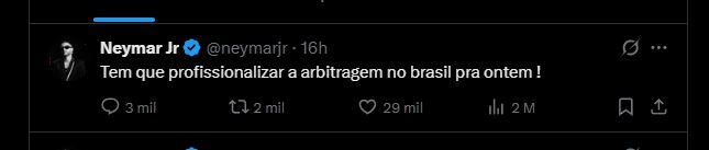 La actuación arbitral fue uno de los focos de la polémica. Y Ney expresó su descontento.¡Tenemos que profesionalizar el arbitraje en Brasil, es para ayer!”, escribió la estrella internacional en referencia al desempeño del juez Rafael Rodrigo Klein. Esta declaración encendió el debate sobre la calidad del arbitraje en el fútbol brasileño y sumó presión en un momento delicado para el club.