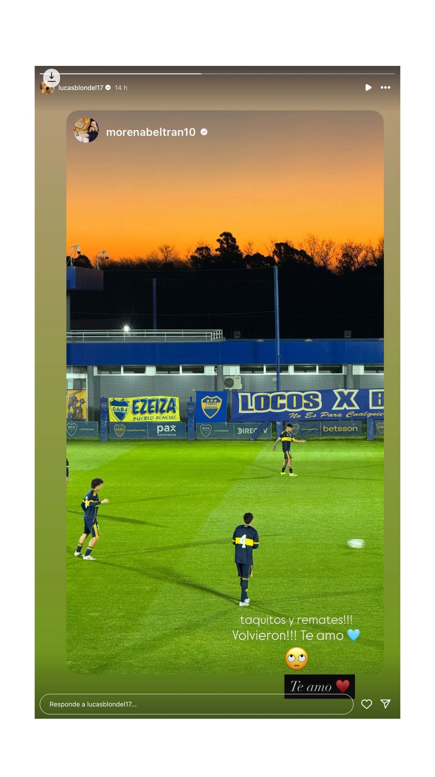Ante la falta de rodaje en la Primera de Boca Juniors, Lucas Blondel generó una sorpresa en el entorno del club al pedir permiso para sumar minutos con la reserva. El cuerpo técnico liderado por Miguel Ángel Russo le dio el visto bueno y le permitió disputar los 90 minutos en la victoria por 2 a 0 ante Newell’s en el predio de Ezeiza. Morena Beltrán, periodista deportiva y pareja del lateral de 29 años, acompañó al futbolista en su búsqueda por recuperar ritmo de competencia tras varios meses sin actividad en el primer equipo. El reflejo del apoyo quedó expuesto en redes sociales con un tierno ida y vuelta.