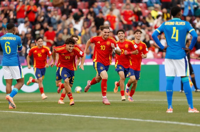 España logró golpear en el arranque del complemento. En una extensa jugada elaborada que se inició con pases en su propio campo, Iker Bravo recibió la pelota dentro del área y, después de gambetear a su marca y al arquero Otávio, definió con el arco vacío para poner el 1-0. Desde entonces, Brasil se hizo cargo de tomar la iniciativa y tuvo importantes ocasiones para igualar el enfrentamiento.