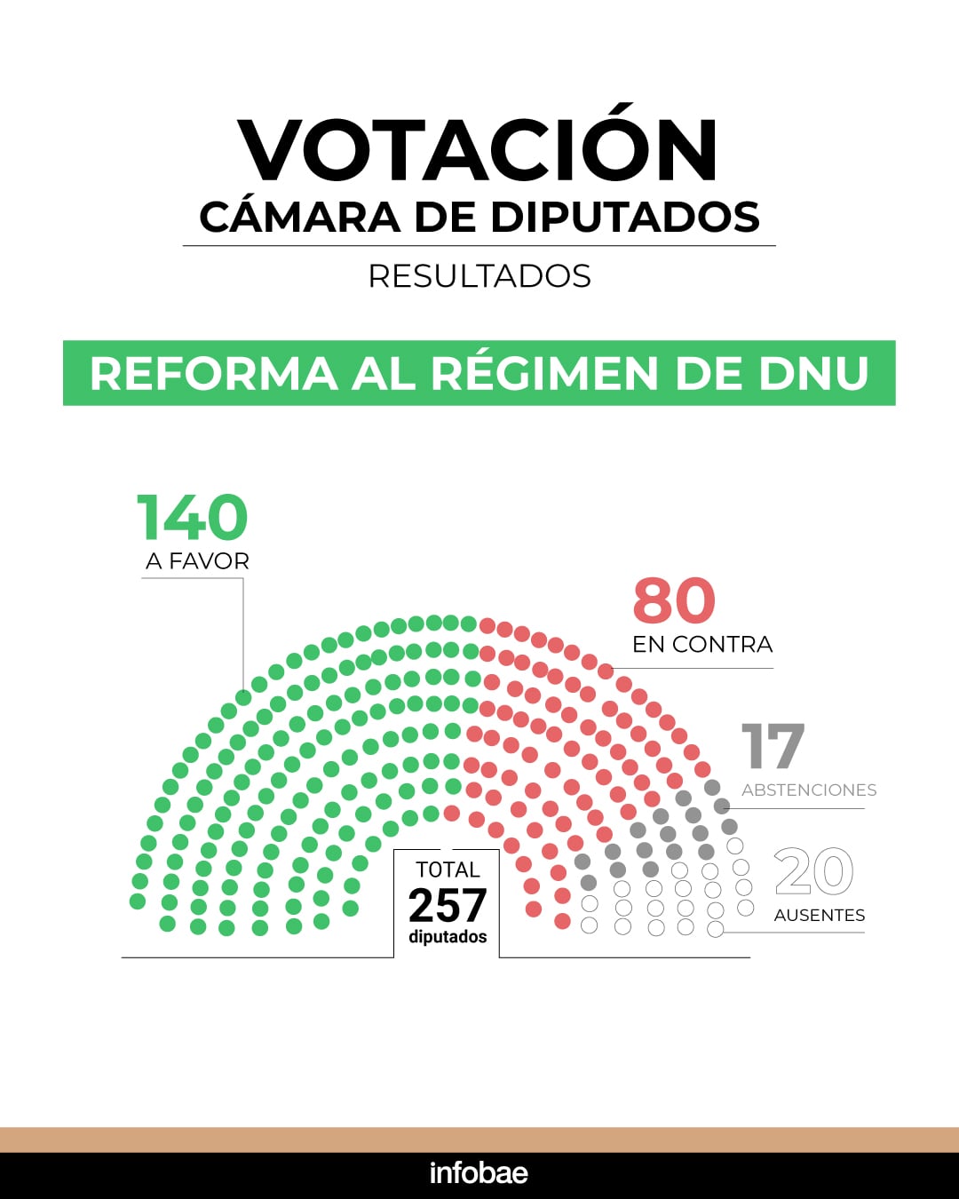 La Cámara de Diputados aprobó el proyecto que cambia el régimen para emitir Decretos de Necesidad y Urgencia (DNU). Sin embargo, durante el tratamiento en particular se rechazó uno de los artículos clave, lo que obliga a que la norma regrese al Senado, donde se decidirá si se mantienen las modificaciones o se vuelve al texto original.